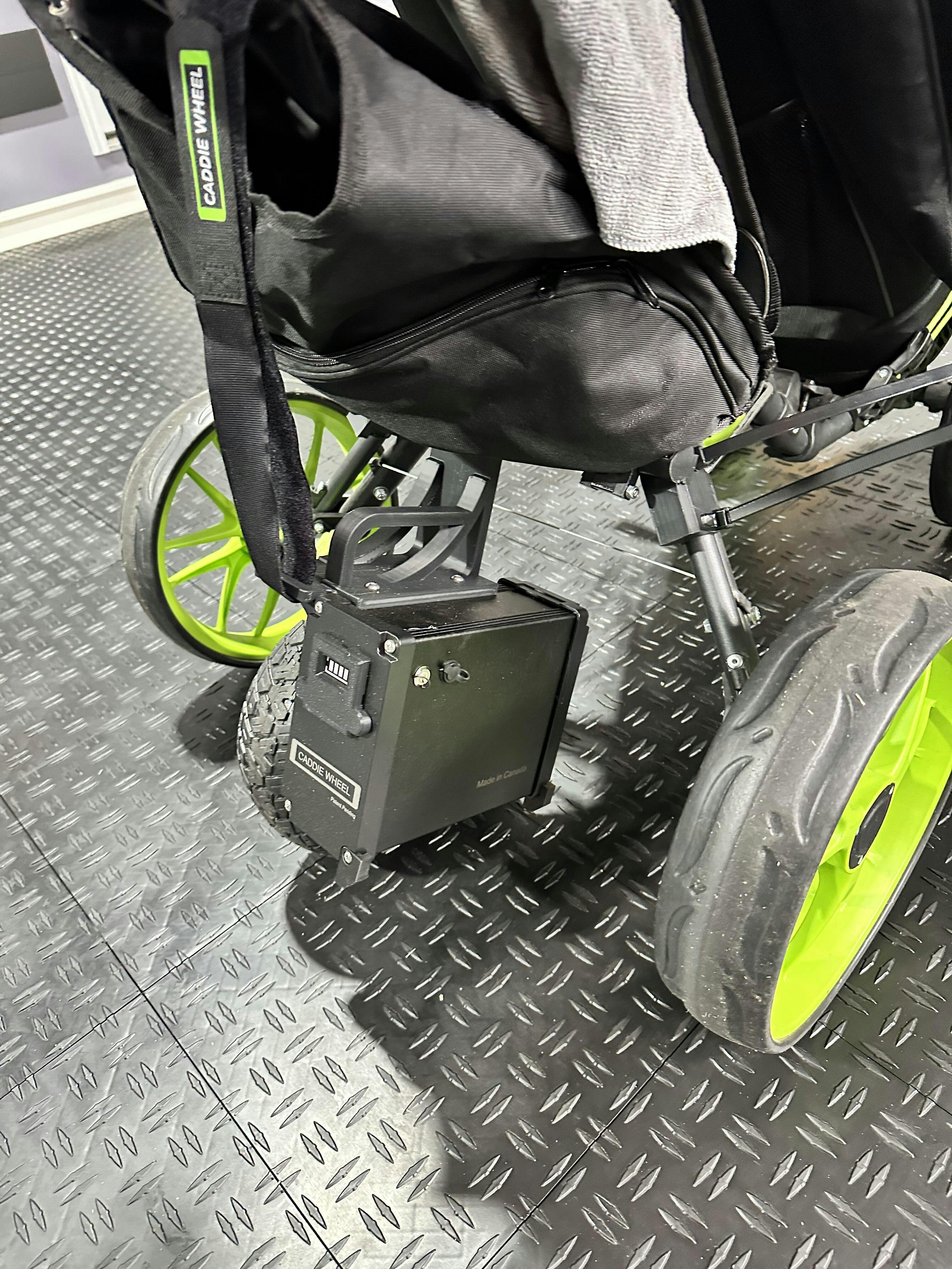 Let the Caddie Wheel power your push cart. The Caddie Wheel eliminates the physically demanding chore of pushing your golf club, making your 18-hole walk more enjoyable. You can easily attach it to your cart and control the speed from the ergonomically designed remote control.